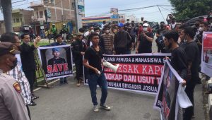 Saat berunjuk rasa massa datang dengan membawa berbagai poster yang berisi tuntutan agar kasus ini segera diungkap. Isinya, diantaranya “Pak Presiden Jokowi Perhatikan Kasus Ini,”.