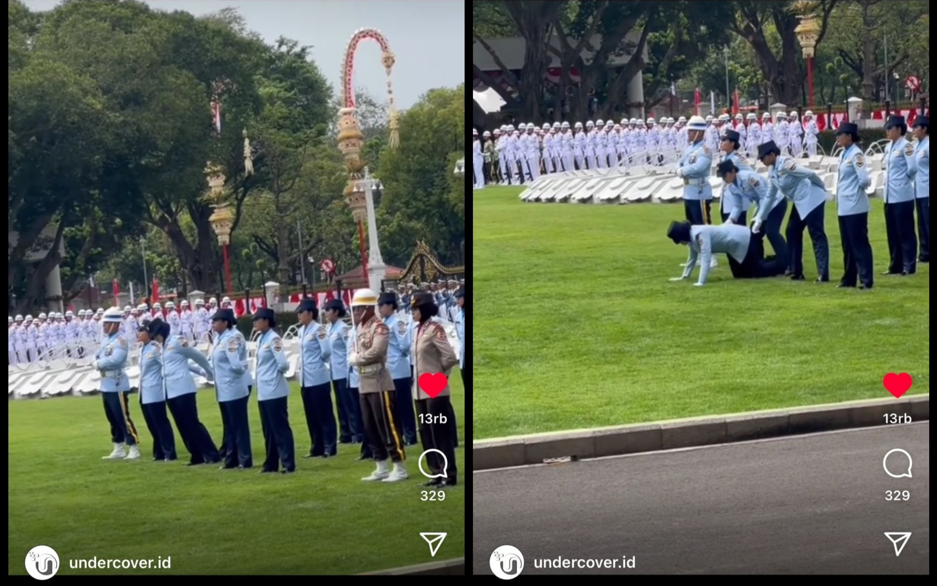 Video yang memperlihatkan momen seorang TNI Wanita nyaris pingsan itu diunggah akun Instagram @undercover.id.