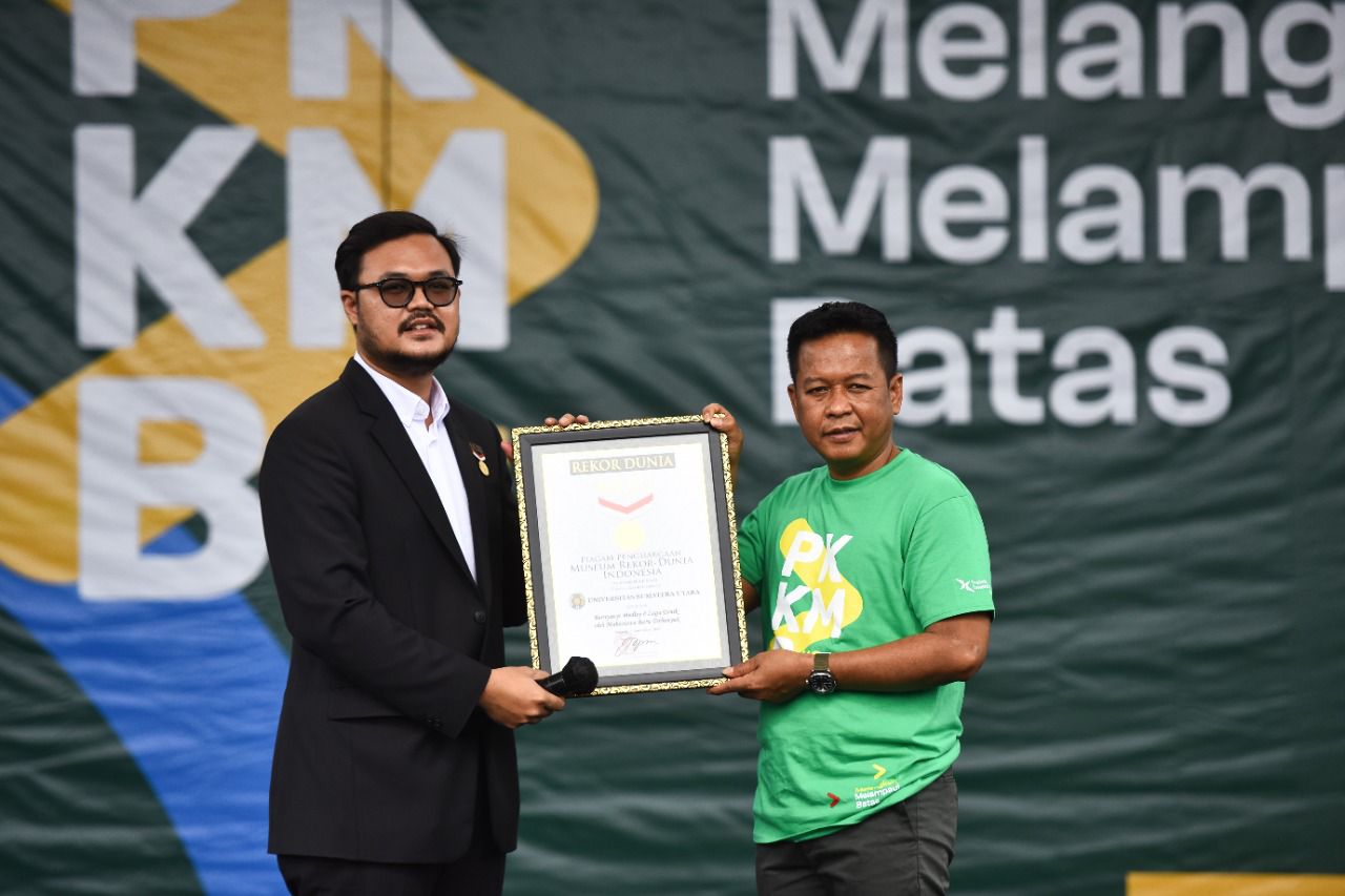Bertema “Melangkah Melampaui Batas”, PKKMB kali ini juga berhasil memecahkan rekor dari Museum Rekor Dunia Indonesia (MURI) untuk kategori menyanyikan lagu 8 etnis yang diikuti 7.858 peserta. Adapun 8 etnis tersebut adalah, Batak Karo, Melayu, Pak-Pak, Batak Simalungun, Nias, Batak Toba, Batak Angkola, dan Mandailing. Piagam MURI sendiri diserahkan Customer Relations Manager MURI Lutvi Syah Pradana.