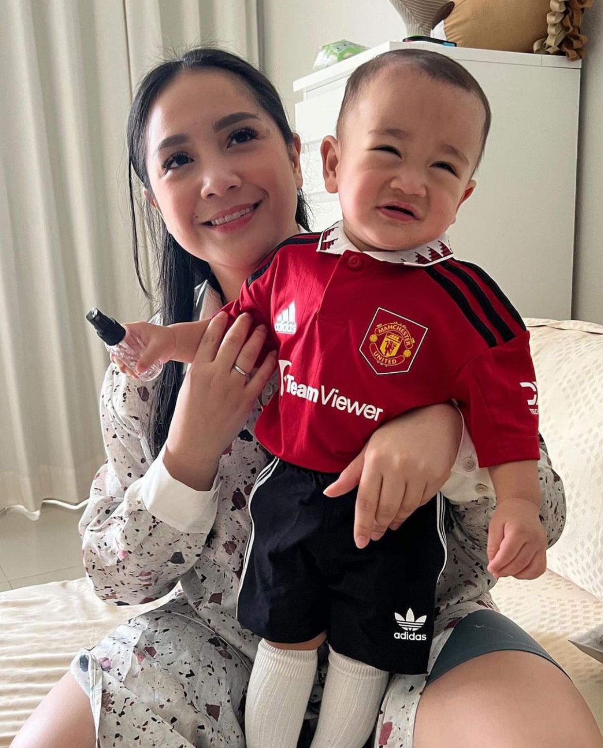 Dari unggahan yang dilihat tim redaksi Indiespot.id, Selasa (1/11/2022), Cipung tampak memakai memakai jersey terbaru Manchester United. Ia dipegangi oleh sang ibu, Nagita sambil tersenyum ke arah kamera.