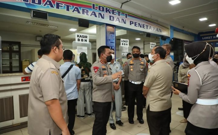 Jenderal bintang dua tersebut juga memeriksa pelanggaran-pelanggaran baru melalui teknologi ETLE dan CCTV serta berbincang dengan masyarakat yang sedang melakukan pengurusan kelengkapan kendaraan.