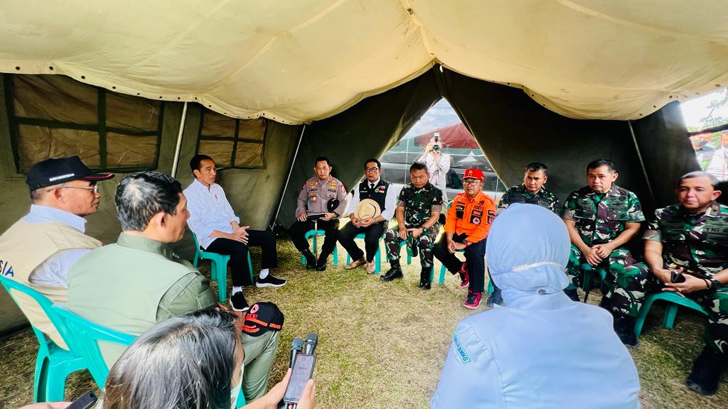 INDIESPOT.ID, Kabupaten Cianjur – Presiden Joko Widodo menggelar rapat terbatas bersama jajarannya di lokasi pengungsian korban gempa Cianjur di Taman Prawatasari, Kabupaten Cianjur, Provinsi Jawa Barat, pada Selasa, 22 November 2022. Dalam rapat yang digelar secara mendadak tersebut, Presiden antara lain menginstruksikan jajarannya untuk segera membuka daerah terisolasi.