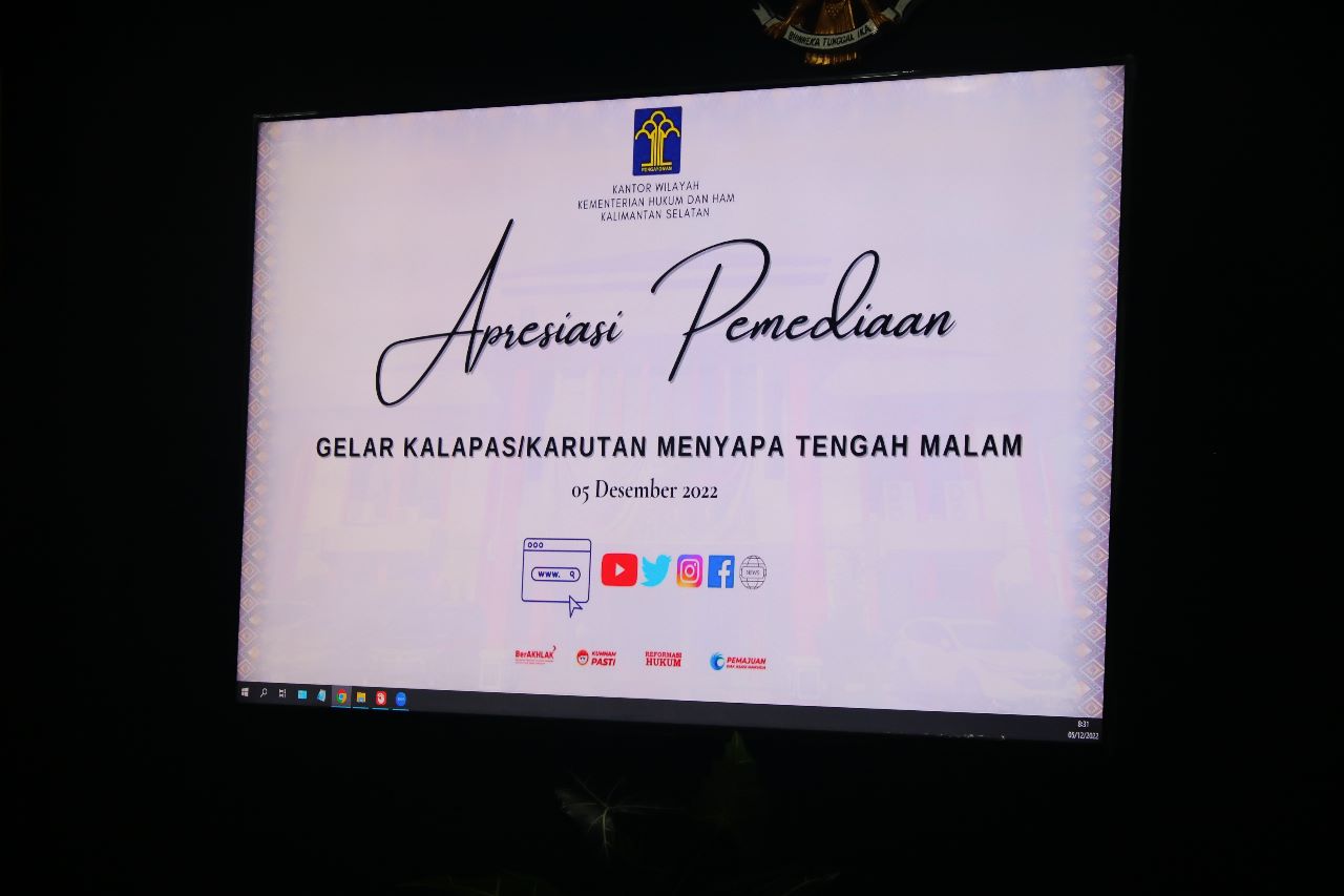 Kegiatan gelar apresiasi pemediaan dan publikasi ini disaksikan secara langsung dan virtual oleh Pimpinan Tinggi Pratama, Pejabat Administrator, Pejabat Pengawas, Kepala UPT Pemasyarakatan Se-Kalimantan Selatan, JFT dan JFU. Lilik Sujandi menyampaikan kegiatan apresisasi ini merupakan bentuk dukungan dan dorongan kepada tim humas kanwil maupun UPT atas kinerjanya dalam memberikan informasi yang jelas dan sesuai fakta yang ada di lapangan sehingga dapat diterima baik oleh masyarakat.