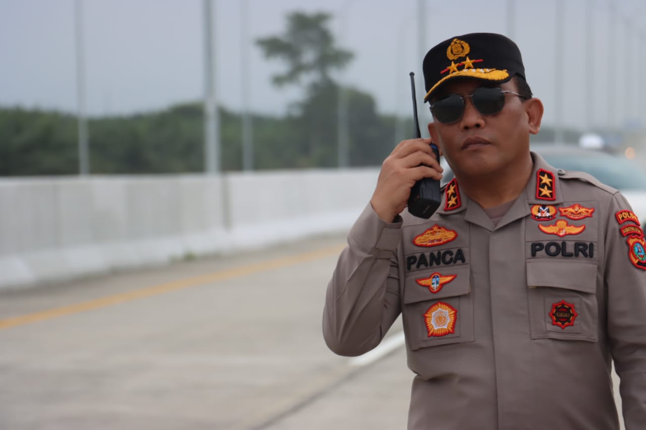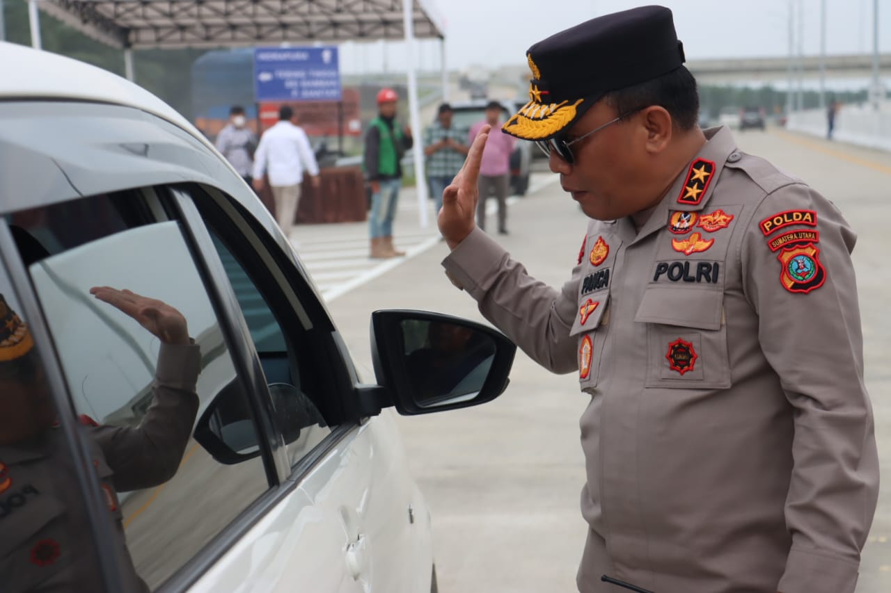 Kapolda Sumut Irjen Pol Drs. RZ. Panca Putra, Msi meninjau langsung simulasi penggunaan Tol Tebing Tinggi – Indrapura yang akan difungsionalkan dalam Operasi Lilin Toba 2022, Selasa (20/12).