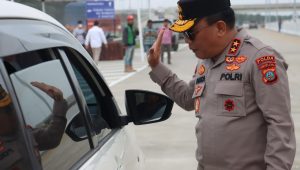 Kapolda Sumut Irjen Pol Drs. RZ. Panca Putra, Msi meninjau langsung simulasi penggunaan Tol Tebing Tinggi – Indrapura yang akan difungsionalkan dalam Operasi Lilin Toba 2022, Selasa (20/12).