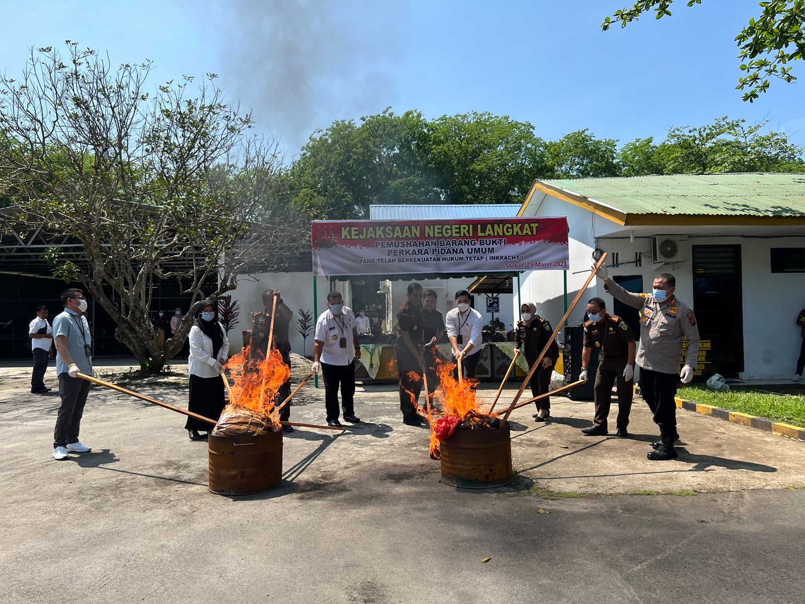 Kegiatan pemusnahan itu dipimpin langsung oleh Kajari Langkat, Mei Abeto Harahap dan dihadiri oleh Kapolres Langkat, AKBP Faisal Rahmat Husein Simatupang, Kepala BNN Kabupaten Langkat, Saharudin Bangko, Hakim Pengadilan Negeri Stabat, Cakra Tona Parhusip.