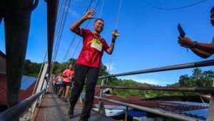 “Saya ucapkan terima kasih kepada panitia yang telah mempersiapkan acara ini dengan baik dan terima kasih kepada seluruh peserta yang berpartisipasi. Hati-hati karena tadi malam hujan dan jalanan licin tapi selamat menikmati alam Bukit Lawang, kalau rezekinya bagus bisa ketemu orangutan di dalam hutan,” ujar Ijeck sapaan akrab Wagub saat melepas peserta di 50 kilometer.