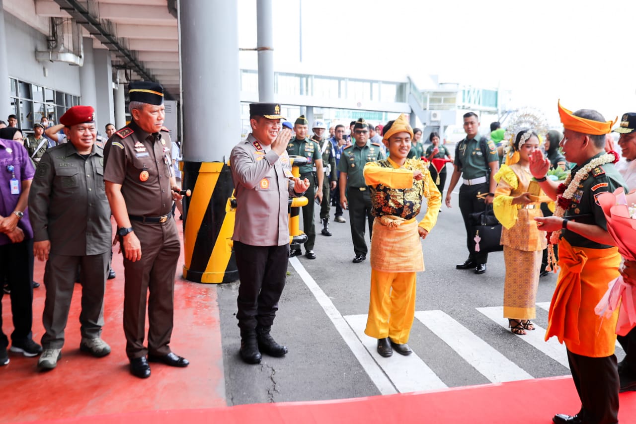 INDIESPOT.ID, Kabupaten Deliserdang – Kapolda Sumut, Irjen Pol Agung Setya Imam Effendi, menyambut kedatangan Pangdam I Bukit Barisan yang baru Mayjen TNI Mochammad Hasan di Bandara Kualanamu, Kabupaten Deliserdang, Selasa (22/8).