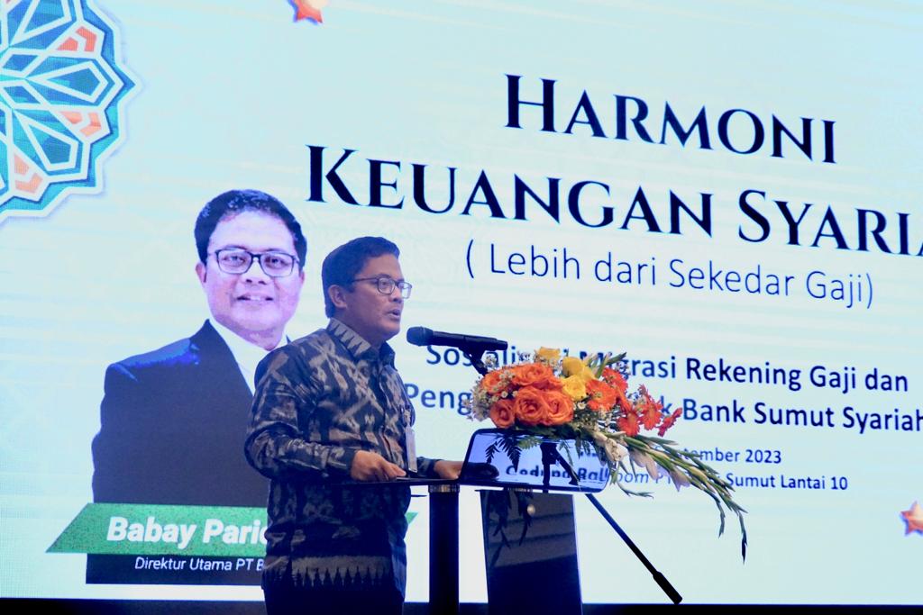 INDIESPOT.ID, Medan – Dalam rangka mendukung pengembangan ekonomi syariah di wilayah Provinsi Sumatera Utara, PT Bank Sumut menggelar Sosialisasi layanan Keuangan dan Migrasi rekening gaji ke Bank Sumut Syariah Rabu (13/9) bertempat di ballroom PT Bank Sumut Jl Imam Bonjol Medan.