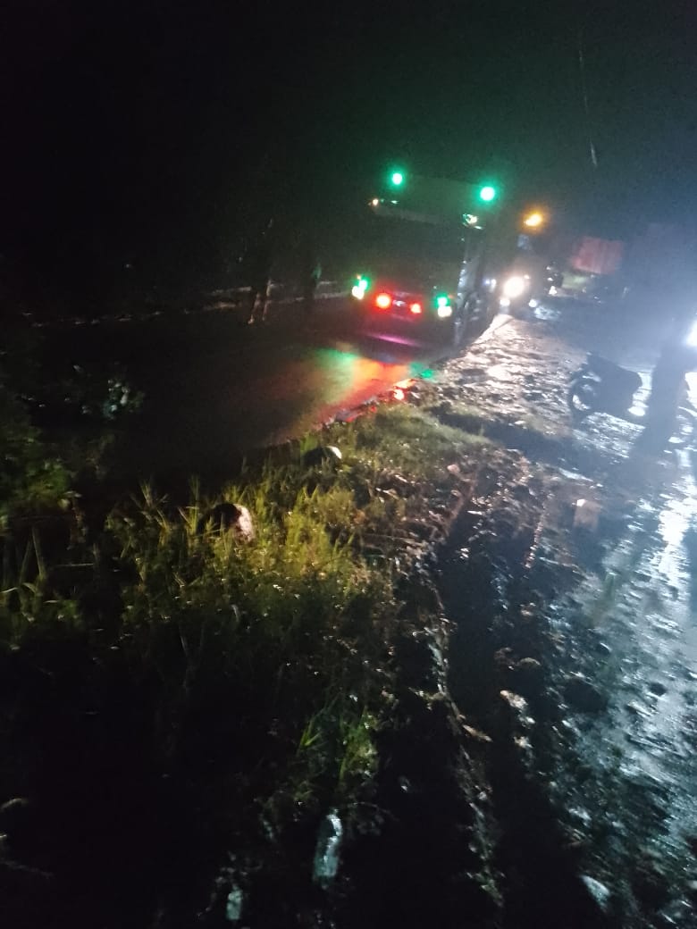 Saat itulah mobil tergelincir dan akhirnya terbalik ke jurang sebelah kanan arah tujuannya karena tanah longsor di sebelah kiri.