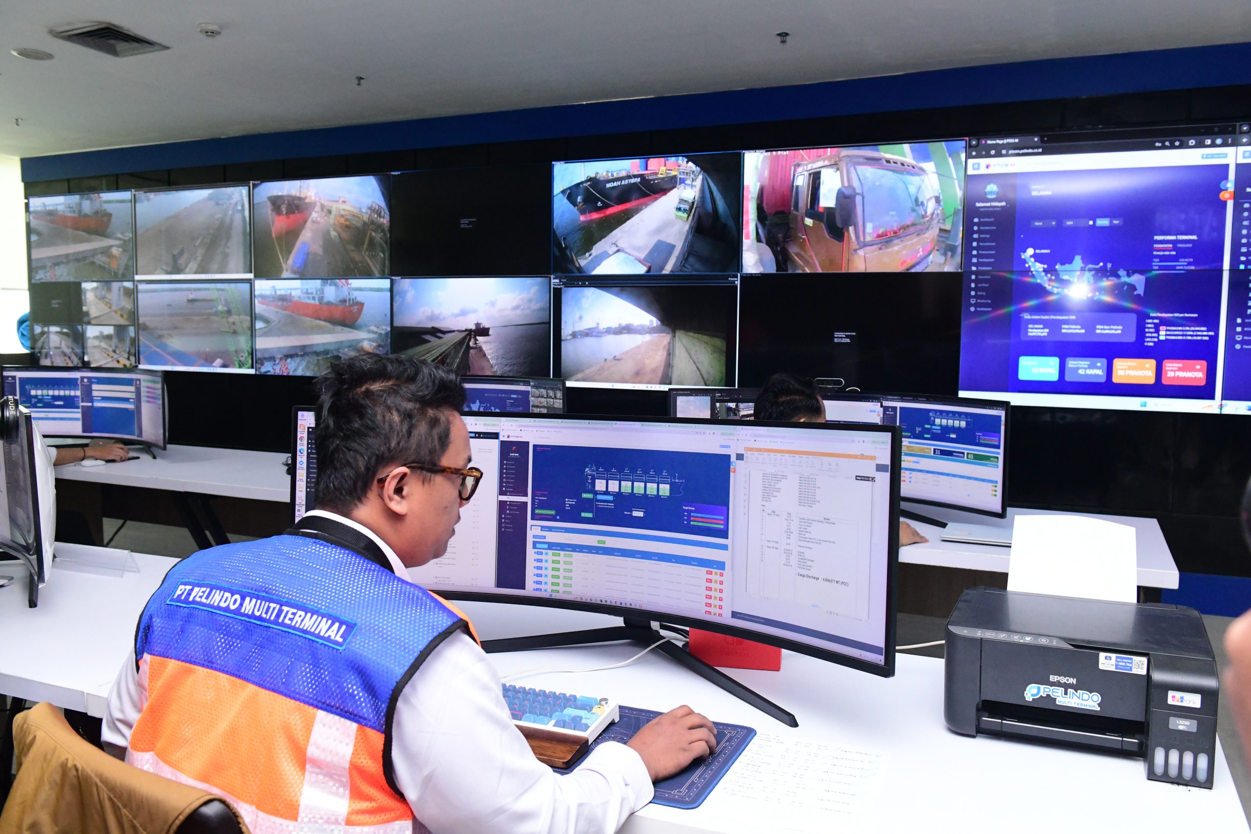 Salah seorang operator planning & control Multipurpose Terminal Control Center (MTCC) pada PT. Pelindo Multi Terminal di Belawan, melakukan pengawasan melalui layar monitor sebagai upaya meningkatkan jasa kepelabuhan melalui penggunaan dukungan digitalisasi sistem informasi untuk memantau kegiatan non-petikemas. MTCC merupakan pusat kontrol terpadu untuk pemantauan secara langsung kegiatan operasional pelabuhan di seluruh wilayah kerja PT Pelindo Multi Terminal.