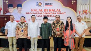 INDIESPOT.ID, Medan – Dalam rangka mempererat tali silaturahmi DPD Partai Gerindra Sumut menggelar Halal bi Halal di Regale Convention Center, Sabtu (4/5/24). Halal bi Halal ini dihadiri Wali Kota Medan Bobby Nasution diwakili Plh Sekda Benny Sinomba Siregar.