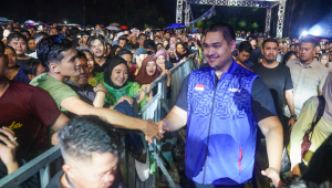 Bersama ribuan masyarakat Kobar dan sekitarnya, Menpora menyaksikan penampilan para artis di atas panggung yang semarak penuh cahaya. Meskipun diguyur hujan, namun tak menyurutkan semangat masyarakat yang datang untuk bernyanyi bersama artis kesukaannya malam itu.