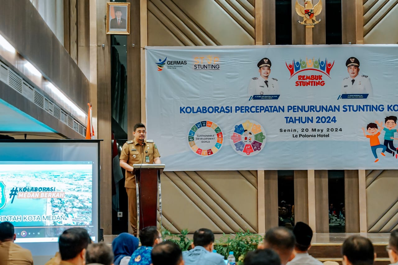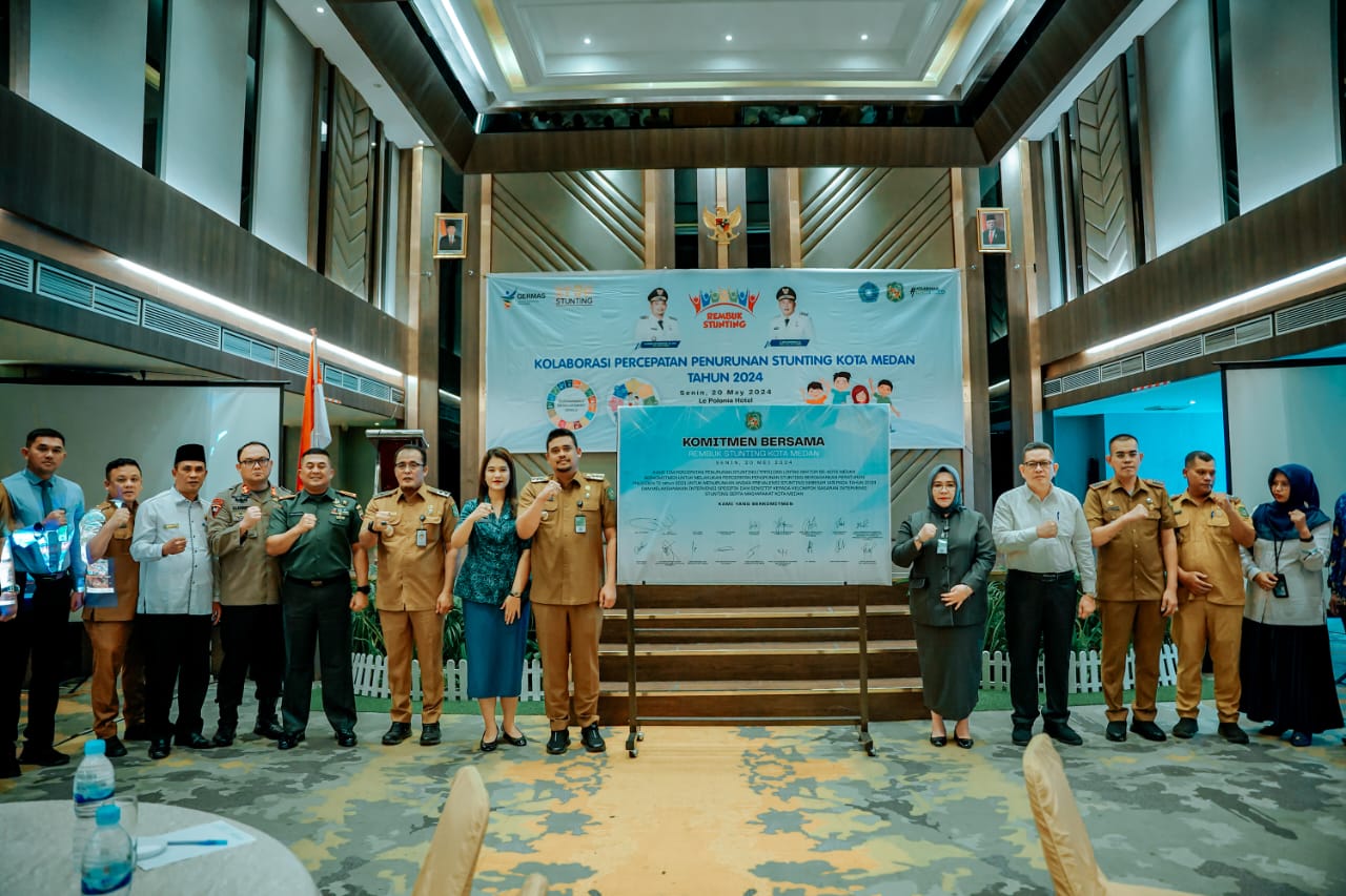 Hal ini terungkap dalam acara Rembuk Stunting Tingkat Kota Medan Tahun 2024 sekaligus Penandatanganan Surat Pernyataan Komitmen Pelaksana Percepatan Penurunan Stunting di Kota Medan oleh Wali Kota Medan Bobby Nasution beserta unsur stakeholder di Le Polonia Hotel Medan, Senin (20/5).