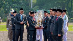 penyerahan tunggul Kecamatan Terbaik Tingkat Provinsi Sumut Kategori Kota tahun 2023 di Lapangan Benteng Medan, Kamis (13/6/2024).