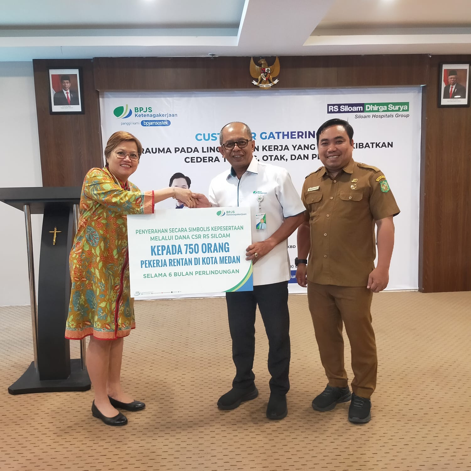 Kepala Cabang BPJSTK (BPJAMSOSTEK) Kota Medan Jefri Iswanto yang hadir pada kesempatan itu mengapresiasi bantuan ataupun CSR dari RS Shiloam Dhirga Surya kepada 750 orang pekerja non penerima upah.