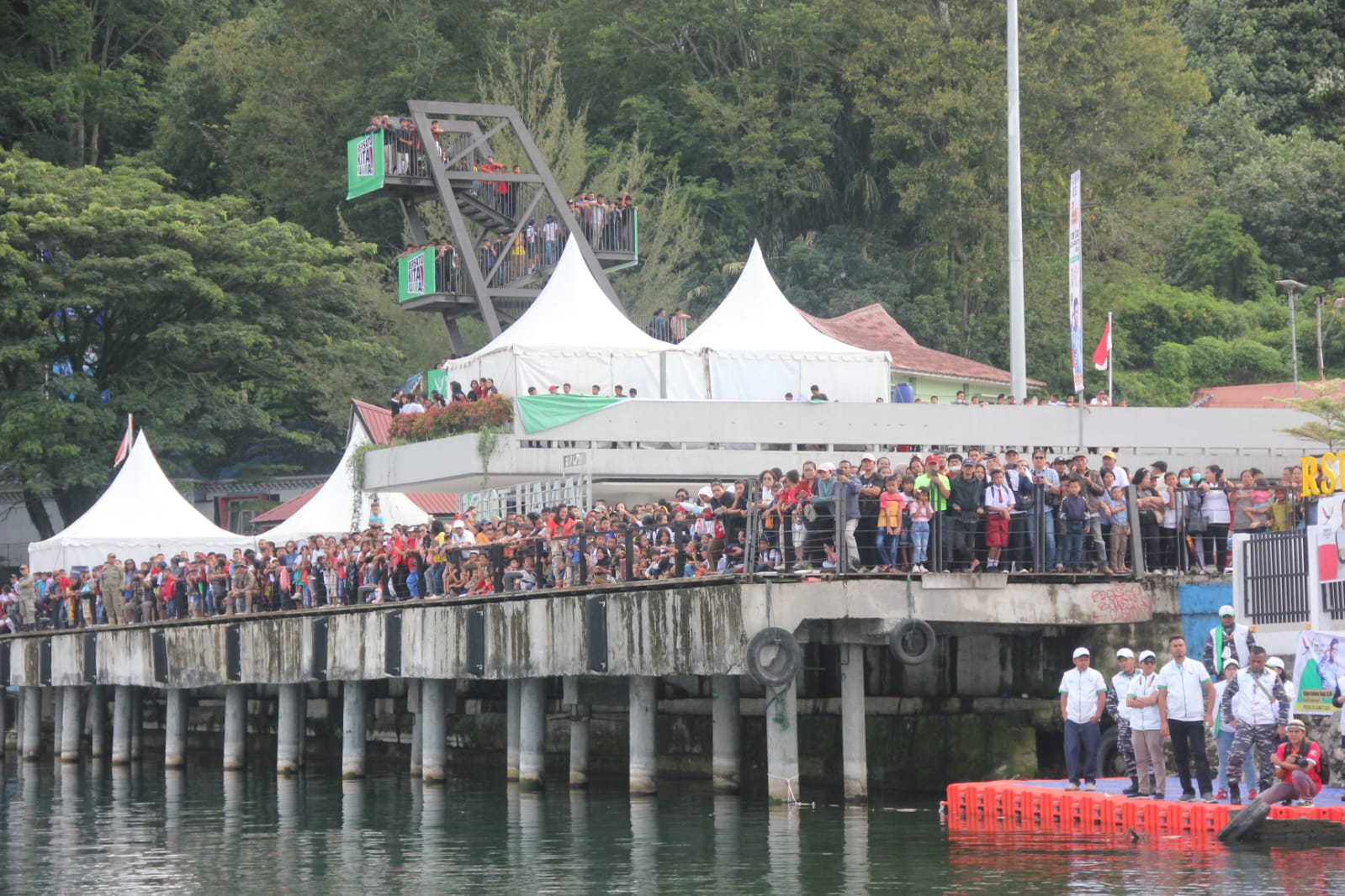 INDIESPOT.ID, Parapat – Ribuan pengunjung menyaksikan jalannya lomba cabang olahraga (cabor) renang perairan terbuka PON XXI, yang digelar di Pantai perairan Danau Toba, Wisata Bahari Parapat, Simalungun, Selasa (10/9/24).