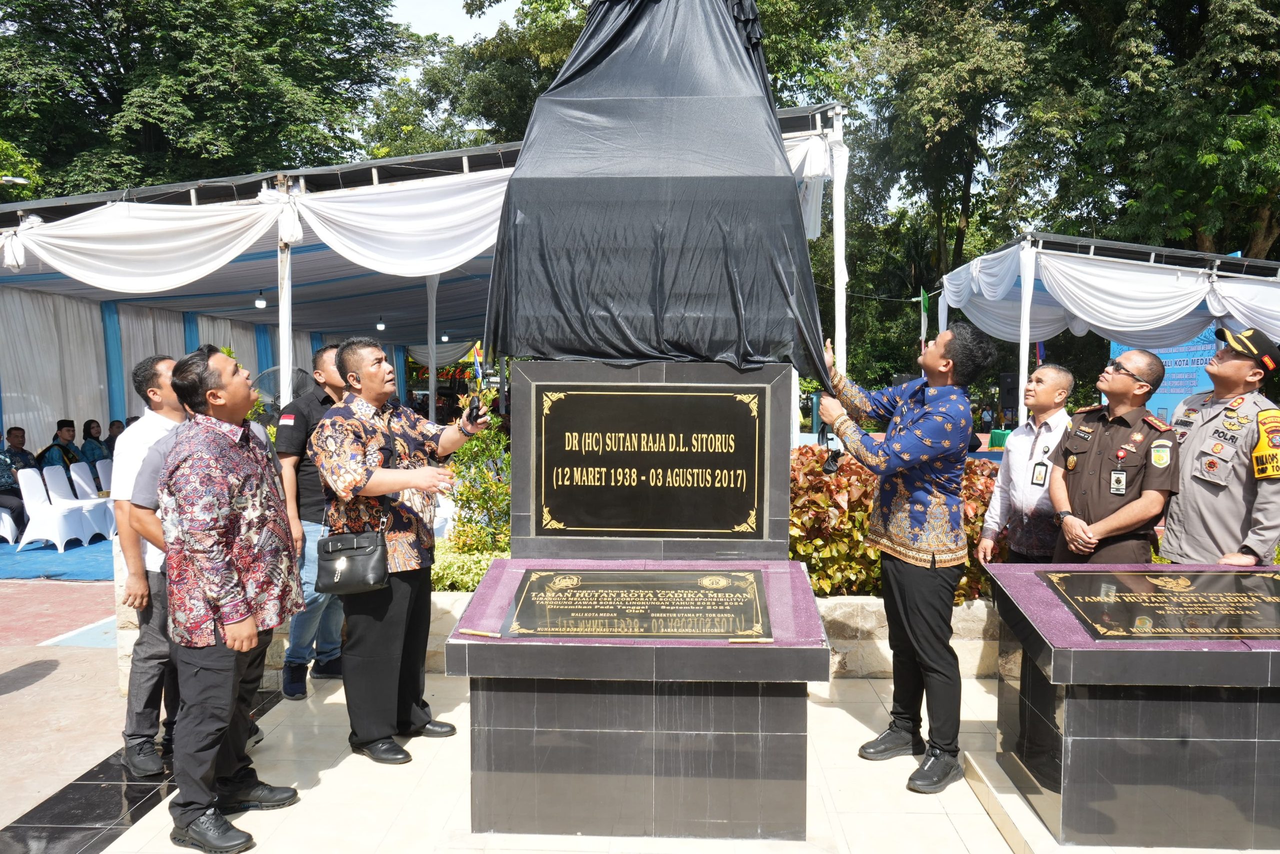 Peresmian taman hutan kota yang juga berfungsi sebagai paru-paru kota ini ditandai dengan penandatanganan prasasti oleh Wali Kota Medan Bobby Nasution bersama dengan Direktur Utama PT. Tor Ganda Sabar Ganda Leonardo Sitorus.
