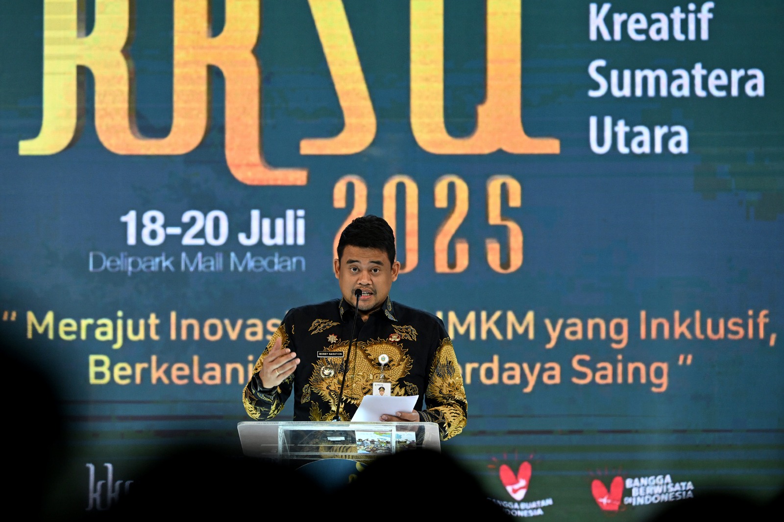 “Ini masalah di beberapa daerah Indonesia, perlu kolaborasi kita bersama untuk mengangkat level UMKM kita, karena kita semua sepakat UMKM merupakan motor penggerak ekonomi Indonesia,” kata Bobby Nasution, saat pembukan Karya Kreatif Sumatera Utara (KKSU) 2025 di Tiara Convention Centre, Jalan Cut Mutia Nomor 1, Medan, Jumat (18/7/2025).