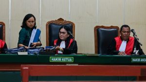 “Saudara beri keterangan apa yang Saudara ketahui. Nanti ada bukti surat tidak sesuai dengan keterangan Saudara, bisa kami perintahkan supaya ditahan. Salah ngomong bisa pidana,” tegas Hakim.