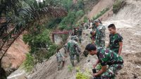Para operator alat berat bersama prajurit dan warga masyarakat tergabung dalam tim Satgas TNI Manunggal selengkapnya