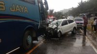 Mobil Datsun Tabrak Bus Pariwisata di Lumban Julu, Toba, 1 Orang Tewas dan 5 Terluka